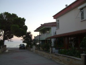 A nyaralónegyedekben egymás hegyén-hátán állnak a kis lakások, igazából egybe épülnek, mint a sorházak… és a falaik igen vékonyak. Van kb. két fö utcájuk ami a tengerre meröleges és kis sétányok, néha csak 1 sor járólap, hogy a köztes házakhoz is el lehessen jutni. A mi negyedünkben volt valami bolt féle, ahol mindenfélét lehetett kapni, persze messze nem mindent. Nagy elönye a negyednek, hogy körbe van kerítve, szóval valamennyire védett… amellett mindenki ismer mindenkit. A törökök szeretik ott tölteni a nyaraikat. Mint kiderült sokaknak közülük valamilyen németországi kötödése van. Hát igen, egy nyaralót nem mindenki engedhet meg magának.